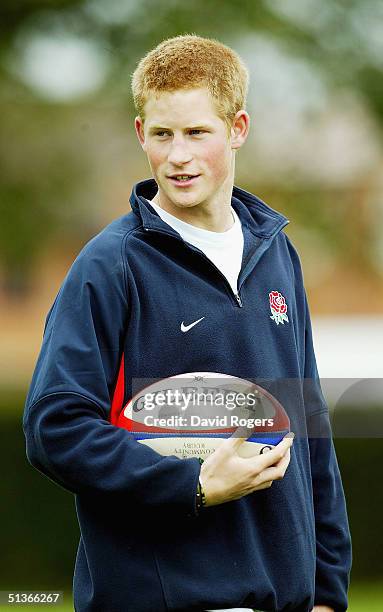 77 Prince Harry Helps Coach Rugby To School Children Photos & High